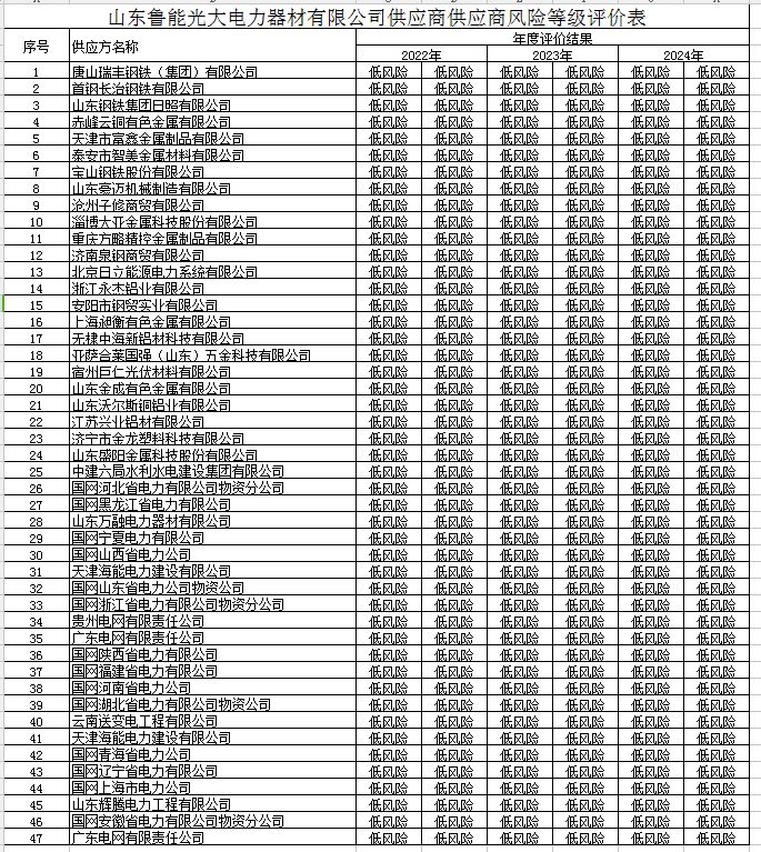 山東魯能光大電力器材有限公司供應(yīng)商供應(yīng)商風(fēng)險(xiǎn)等級(jí)評(píng)價(jià)表 2025-3-12 本文被閱讀 425 次