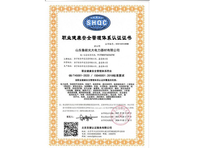職業(yè)健康安全管理體系認(rèn)證證書 2016-2-16 本文被閱讀 2510 次
