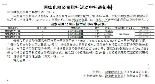 國(guó)家電網(wǎng)公司招標(biāo)活動(dòng)中標(biāo)通知書 2016-2-16 本文被閱讀 2387 次